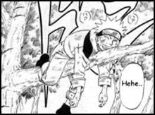 Am nächsten Tag, dem siebten Trainingstag. Machen sich Kakashi und Sakura zum Trainingsplatz, können aber niemanden finden. Plötzlich fliegt ein Kunai von oben vor sie in die Erde und als sie hoch kucken, sehen sie Naruto auf dem Ast liegen, auf welchem Sakura und Kakashi auch waren. Der stolze Naruto will aufstehen, verliert aber schlagartig das Gleichgewicht und droht zu fallen. Kakashi und Sakura erschrecken, doch Naruto fängt sich mit den Füssen wieder ab und hängt nun Kopfüber am Ast. Er hatte sie reingelegt und beginnt auf ihre Kosten zu lachen. Doch dann löst er sich wirklich und fällt. Aber plötzlich rast Sasuke den Baum hoch und hält den Spassvogel noch rechtzeitig fest. Sakura ist stolz auf ihn und Kakashi ist auch zufrieden mit den beiden.