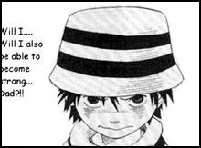 Er denkt an diesen und seinen Vater und findet sie so stark und cool und beschliesst, seine Mutter mit seinen Händen zu beschützen! Er rennt den Schwertkämpfern hinterher und schreit, dass sie seine Mutter los lassen sollen! Seine Mutter ist nun noch besorgter und die Entführer lachen und stürzen sich auf den Kleinen. Als sie ihre Schwertattacken vollendet waren, stellen sie aber fest, dass sie nur einen Baumstumpf zerschnitten haben.