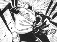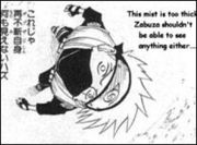Der Nebel ist so dicht, dass selbst Kakashis Sharingan Probleme hat. Als mehrere Shuriken auf ihn zu fliegen, kann er sie gerade so noch abwehren. Doch plötzlich steht Zabuza hinter ihm und ist erstaunt, über Kakashis Verteidigung. Doch er meint, dass er es beim nächsten Mal nicht schaffen wird, sich zu verteidigen. Zabuza formt ein Siegel und verschwindet wieder im Nebel. Kakashi kann im Nebel nun auch nichts mehr sehen…