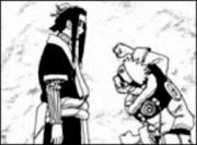 Naruto stürzt auf Haku zu, welcher ihn rührungslos anblickt und einen Satz beginnt, mit der er sich bei Zabuza für seine Niederlage entschuldigen will. Haku beginnt den Satz: „Zabuza, ich bin, ich bin… „. Während Narutos Faust auf ihn zu rast! Doch diese bleibt plötzlich kurz vor Hakus Gesicht stehen und Naruto versucht sich mit aller Kraft zurück zuhalten. Erblickt zu Haku und sagt: „Du bist der von damals!“. Naruto erinnert sich zurück, an das Lächeln des lieben Mädchens. Haku fragt ihn, warum er gestoppt hat?! Er hat sein Freund getötet, warum kann Naruto ihn nicht töten? Naruto blickt zu Sasuke und schlägt Haku plötzlich nieder, wobei er laut, „Verdammt!“, schreit.