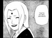 Unterdessen steht Tsunade in Konoha in ihrem Büro und schaut aus dem Fenster hinaus. Der Regen hält immer noch an, während Shizune in den Raum kommt. Sie macht sich Sorgen um Jiraiya und hofft, dass er nicht sterben wird. Tsunade allerdings reagiert eiskalt und behauptet, dass er sterben wird. Sie grinst und dreht sich zu ihrer Helferin um, worauf sie sagt, dass dies ihre Wette ist und jeder weiss, wie Wetten bei Tsunade ausgehen. Shizune ist zuerst am Zweifeln, doch dann grinst auch sie. Tsunade denkt danach an Jiraiyas Worte und meint, dass er immer cool sein will, aber sich, sollte er den Kampf gegen Pain überstehen, nie mehr in Tsunades Auftrag in Gefahr begeben soll.