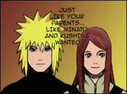Er möchte nun wissen, was Jiraiya davon hält, doch dieser schaut erst einmal sehr verwundert. Dann will er nicht glauben, dass Minato es ernst meint und erklärt ihm, dass es nur ein zufälliger Name ist, der ihm einfiel, während er eine Portion Ramen gegessen hat. Doch dann taucht Kushina auf und meint, dass Naruto ein wundervoller Name ist. Sie ist gerade mit Naruto schwanger und streichelt mit ihrer Hand ihren Bauch, während Jiraiya sie verwundert ansieht. Dieser meint nun auch, wieder mit einem scherzhaften Unterton, dass, wenn er ihrem Sohn seinen Namen gibt, damit ja zum Paten werden würde. Und er kann sich nicht vorstellen, dass sie so etwas wirklich wollen. Doch Minato reagiert ganz gelassen, als hätte er so wie so vorgehabt, Jiraiya zum Paten zu machen. Er meint, dass er ein Ninja mit wahrem Können ist und sich jeder ein Beispiel an ihm nehmen sollte. Er kann sich ausserdem nicht vorstellen, dass es noch einen besseren Shinobi als ihn geben könnte.