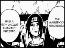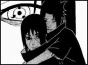 Itachi steht jetzt von seinem Thron auf und beginnt damit, Sasuke etwas über das Mangekyou Sharingan zu erzählen. Er meint, dass die Augen immer weiter in die Dunkelheit gezogen werden, sobald man sie das erste Mal aktiviert hat. Je öfter und je länger man sie benutzt, desto schneller geht dieser Prozess voran. Sasuke versteht nicht ganz, was Itachi damit sagen will, doch es wird ihm schnell klar. Der Preis, den man dafür zahlen muss, das Mangekyou Sharingan zu benutzen, ist Blindheit. Er stellt ausserdem fest, dass es der Preis dafür ist, das Kyubi zu kontrollieren. Itachi ist beeindruckt und meint, dass Sasuke ihm anscheinend wirklich gut zugehört und die Tafeln im geheimen Treffpunkt unter dem Tempel gelesen hat. Sasuke will nun wissen, wer genau Madara ist. Itachi antwortet, dass Madara Uchiha jemand ist, der durch seine Sharingan das Kyubi gezähmt und wie ein Haustier gehalten hat; der sowohl Itachis Verbündeter als auch Lehrer ist und die einzige Person, die jemals das letzte Geheimnis des Sharingan gelüftet hat: Madara Uchiha ist ein unverwundbarer Unsterblicher!
