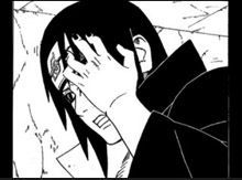 Sasuke schreit qualvoll auf, als Itachi wieder von ihm ablässt. Mit schmerzverzehrten Gesicht drückt er sich die Hand aufs blutende Auge. Itachi erinnert Sasuke daran, dass er ihn gewarnt habe ohne Mangekyou Sharingan nicht stark genug zu sein um gegen ihn zu gewinnen. Zetsu, verschmolzen im Stein, beobachtet das ganze Geschehen von oben. Seine Hand bebt vor Schmerzen und Entsetzten, als Sasuke sie runter nimmt und auf das Blut darin starrt. Als Itachi sich nähert, um auch Sasuke's rechtes Auge zu bekommen, aktiviert dieser sein Juin und schlägt Itachi mit seinem Flügel weg. Itachi legt Sasuke's linkes Auge in ein kleines, mit Flüssigkeit gefüllten, Gefäss und verschliesst dieses. “Dies ist der Unterschied unserer Stärke...”, beginnt Itachi. Plötzlich taucht ein zweiter Itachi hinter Sasuke auf, hält ihn fest und beendet seinen Satz: “...und der Unterschied unserer Augen!”