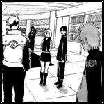 Unterdessen bei Team Taka: Das Team und Kisame stehen in einem grossen Raum, der ebenfalls wieder aus Knochen zu bestehen scheint, um einen Tisch herum. Sasuke sitzt auf einem knöchernen Thron, Madara auf der Tischkante. Suigetsu, Karin und Juugo stehen auf der einen Seite des Tisches, Kisame auf der anderen. Madara fragt Sasuke, wie dieser es anstellen will, Konoha zu vernichten. Sasuke antwortet, dass er nur die Ältesten töten will und sonst niemanden zu Schaden kommen lassen will. Kisame meint jedoch, dass es nicht so einfach funktionieren wird. Wenn er die Ältesten angreifen will, werden die anderen sie beschützen und Taka sei noch nicht stark genug, um mit so vielen mitzuhalten. Suigetsu unterbricht Kisame und meint, dass dieser sie lieber nicht unterschätzen solle. Juugo versucht zwar, Suigetsu zu stoppen, doch dieser hat schon sein Schwert gezogen und springt auf Kisame zu.