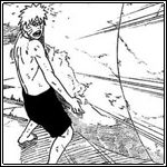 Daraufhin soll er es mit der Kraft der Natur versuchen. Naruto stimmt zu und taucht seine Hand in etwas Froschöl, wodurch er in der Lage ist, die Kraft der Natur anzuziehen. Fukasaku meint dann, dass er es noch einmal versuchen soll. Naruto stimmt zu und versucht erneut, den Stein anzuheben, doch diesmal hat er damit sogar Erfolg. Gamakichi lobt Naruto zuerst und meint, dass er das wirklich gut gemacht hat, als dieser dann jedoch den Steinfrosch zu Boden wirft, schreit er ihn an, dass diese Statuen die Vorfahren aller Frösche symbolisieren und er deswegen besser mit ihnen umgehen soll. Während Fukasaku sich erneut eingestehen muss, dass Naruto schneller lernt als Jiraiya, muss er sich nun auch noch eingestehen, dass er ebenfalls sehr viel kindischer als Jiraiya ist.