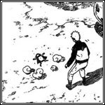 In der Zwischenzeit trainieren Naruto und Fukasaku am Myoubokuzan die Fusion. Fukasaku ist gerade von Narutos Schulter gefallen, meint aber, dass sie es noch einmal versuchen sollten und springt wieder auf Narutos Schulter. Er wendet die Technik an und beide konzentrieren sich, um ihr Chakra auf eine Wellenlänge zu bringen, doch taucht das Kyuubi auf und verdrängt Fukasaku wieder. Dieser wird daraufhin zu Boden geschleudert und meint, dass es so aussieht, als hätte es keinen Sinn mehr. Naruto versteht nicht, warum es keinen Sinn haben sollte, doch erklärt Fukasaku ihm, dass er durch das Kyuubi in Narutos Körper abgestossen wird und sich dieses nicht auf sein Chakra einstellt. Naruto will das nicht glauben und fragt, was sie dagegen tun sollen, da sein Training nutzlos war, wenn er die Technik in einem echten Kampf nicht einsetzen kann.