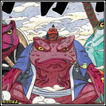 Direkt zum Zeitpunkt des Shinra Tensei ist Naruto nach Konoha zurückgekehrt. Er befindet sich bereits jetzt im Eremiten-Modus und trägt einen Mantel, der dem seines Vaters ähnelt, sowie eine Schriftrolle wie die von Jiraiya. Ausserdem hat er vier Kröten, Fukasaku und Shima dabei. Gamabunta und Naruto fragen sich, wo sie sind und wo der Feind ist, als Shima auf Gamakichis Kopf landet. Fukasaku will von seiner Frau wissen, warum sie nicht in Konoha sind, obwohl sie sie dahin beschwören sollte, doch antwortet Shima, dass sie sich sehr wohl in Konoha befinden und sie sich einfach einmal umsehen sollen. Als Naruto das Denkmal der Hokage sieht und Shima erklärt, dass sie genau weiss, wer das getan hat, da sie dieselbe Energie wie bei Jiraiyas Kampf spürt, wird Naruto wütend.