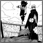 Pain meint zu Naruto, dass er zwar behauptet, dass sein Frieden nur eine Lüge wäre, doch in dieser verfluchten Welt, in der sie sich befinden, Menschen niemals einander verstehen und so zu Frieden gelangen können. Naruto schreit ihn allerdings an und meint, dass Jiraiya genau daran geglaubt hat und er deswegen davon überzeugt ist, dass es auch möglich ist. Pain erklärt ihm jedoch, dass er nichts tun kann als zu reden und ihm deswegen nur seine Kraft überlassen kann, um so für Frieden zu sorgen. Zur selben Zeit beschliessen Shikaku und Inoichi, dass sie sich in Gruppen von zwei Leuten aufteilen müssen und so schnell wie möglich den wahren Körper von Pain finden müssen. Shikamaru und Shiho sollen da bleiben, da sich Shikamaru mit seinem gebrochenen Bein eh nicht bewegen kann. Katsuyu soll in der Zeit alle Dorfbewohner, die sich noch bewegen können, bitten, ihnen zu helfen.