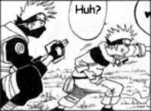 Nach seinem Startsignal geht Kakashi davon aus, dass sich alle Drei versteckt haben. Jedoch steht Naruto hinter ihm und fordert ihm zum Kampf auf. Kakashi willigt verwundert ein und beginnt mit seiner ersten Lektion: Taijutsu.