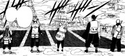 Der Tsuchikage ist in der Lage die ganze Insel in der Luft zu tragen. Naruto wundert sich, weshalb Yamato immer noch nicht zurückgekehrt ist. Yamato müsse zu einer wichtigen Prüfen gehen, meint Aoba zu Naruto.