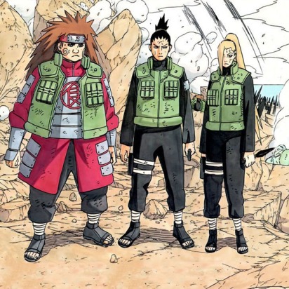 Das Team Asuma steht deren Sensei nun gegenüber. Sie sagen, sie seien bereit. Asuma meint zu den drein, dass sie grossartige Ninjas geworden sind. Shikamaru bedankt sich bei seinen Sensei und störmt los.