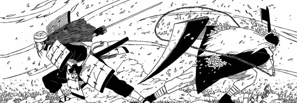 Hanzou meint zu Mifune, dass dieser früher auch an Frieden geglaubt hat und veruscht hätte, die grossen Ninja Länder zu vereinen. Ihn ist allerdings schnell realisiert wurden, dass dies nicht möglich sei. Krieg und Tod ist immer das, was am Ende bleibt. Mifune erwidert dies und sagt, für ihn sei sein Leben egal, ob er dieses für den Frieden opfern müsse. Was ihn bewegt ist der “Glaube”. Der Glaube von Hanzou sei längst verloren, meint Mifune. Wenn es nach den Samurais ging, ist die “Katana” (Samurais Schwert) wie sein Eigentümer selbst. Der Geist des Besitzers wird immer in dessen weiterleben. Hanzou versucht ein Ninjutsu zu benutzen, doch dieser wird von Mifune gestoppt. Hanzou sagt, dass Gerüchte zufolge, Mifune ein Iai Meister wäre, einer der den Gegner niemals die Chance gäbe, Ninjustus zu benutzen. Mifune meint, er hätte schonmal mit Hanzou früher gekämpft. Dieser hatte damals sein Schädel und sein Katana gebrochen. Mifuna sagt, dass Hanzous “Schmerzen” ihn einholle, weil dieser nicht mehr der selbe sei. Hanzou weiss nicht, wohin Mifuna hinaus will. Plötzlich erinnert sich Hanzou an seinen Tod, damals gegen Pain. Pain sagt, dass dieser Hanzou früher respektiert hätte, doch jetzt nicht mehr, da dieser sich verändert hat. Pain tötet daraufhin Hanzou. Aus dem Boden taucht Hanzous Salamander auf und verschluckt Mifune, doch dieser befeit sich, indem er mit seinem Katana den Salamander in zwei Hälften von Innen zerschneidet. Mifune sagt, dass ein Katana, dass scharf bleit, legendär wird und immer ein Kampf besiege würde. Mifune hollt zum schlag auf und schneidet Hanzous Sichel und dessen Maske auf. Hanzou ist geschockt und fragt sich wie dies passieren konnte. Mifune erklärt dies damit, dass Hanzou den Glauben aufgegeben hat. Seine Klinge hätte die schärfe verloren, sie ist nur noch ein Stück Metal, überzogen mit Blut.