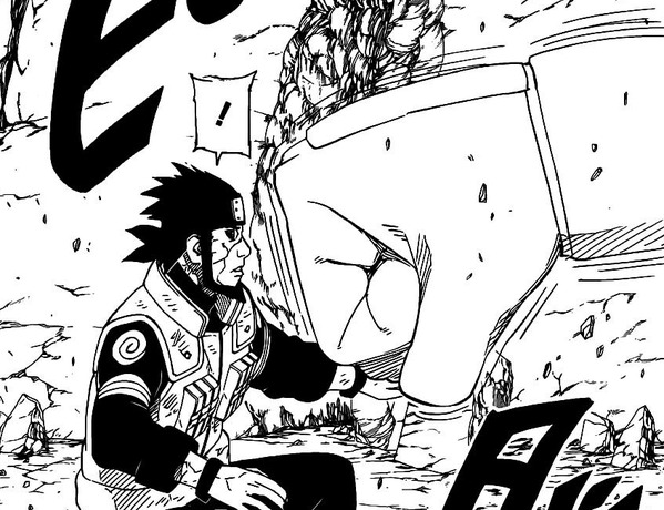 Währenddessen kämpf das Team von Shikamaru gegen ihren Sensei, Asuma. Shikamaru sagt zu Chouji, dass dieser viel zu langsam sei und sich mehr konzentrieren solle. Asuma sagt zu Shikamaru, dass er seine Schattenkunst Technik benutzen soll, damit dieser hochspringen kann, woraufhin Chouji dann die Chance hätte, diesen zu erledigen. Doch Chouji zögert und lässt Asuma viel Zeit zum ausweichen. Dieser weicht wie erwarten aus und kickt Chouji weg. Asuma bereitet sich auf ein Jutsu ein.