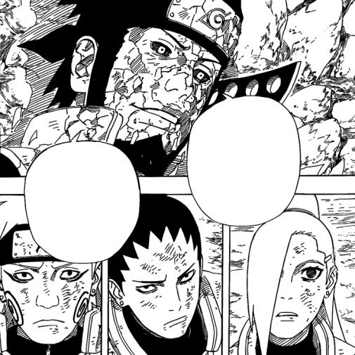 In allen Ninja-Regionen, wo gekämpft wird, stoppen alle ihre Angriffe. Sie bemerken Choji, der mit hilfe von gigantisch grossen Schmetterlingflügeln über den Horizon schwebt. Dieser ist fest davon überzegt, dass er die Schlacht nun beenden werde. Ino meint, sie seien schon seit Jahren ein Team, aber Choji war noch nie so überzeugend.