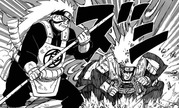 Choji beschliesst alleine gegen Gedo Mazo zu kämpfen. Chouza, Chojis Vater, stellt sich vor diesen, um ihn zu helfen. Madara befiehlt Gedo Mazo die beiden anzgreifen. Choji konzentriert sein ganzes Chakra in seiner rechten Faust und schlägt auf Gedo Mazo zu. Allerdings hat sein Agriff keine Wirkung, da Gedo Mazo die Fähigkeit hat, Chakra auszusaugen. Gedo Mazo lässt eine gewaltige Schockwelle frei und lässt somit Choji und Chouza von sich wegschleudern. Naruto spürt das bösartige Chakra von Gedo Mazo und beschliesst sich in den Kyuubi-Modus zu versetzen, da er so sich schneller fortbewegen kann. Killer Bee sagt zu Naruto, dass wenn er alles auf einmal von dem Kyuubi-Chakra benutzt, werde dieses ausgehen, wenn er es mal wirklich bräuchte.