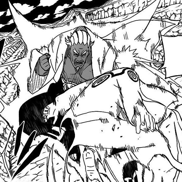 Der Raikage meint, wenn Naruto nicht aufgebe und sich zurückziehe, würde er ihn umbringen. Diesen Weg müsse er dann wohl gehen, dann könnte der Feind seine Pläne nicht vollenden. Als er dann zum Schlag aufholt, hält ihn Killer Bee in letzter Sekunde auf. Bee sagt, dass er dies nicht zulassen könnte. Der Feind könne sie sowieso nicht besiegen. Er würde auch sein Leben für Naruto opfern, damit er auf das Schlachtfeld kann. Tsunade ist entsetzt und sagt, dass es die Entscheidung der Armee sei, er müsse als General dessen Wünsche respektieren. Er würde um jeden Preis den Krieg gewinnen wollen und er werde alles tun, um dieses Ziel zu erreichen. Die Jinchurikis hätten keine Kontrolle über ihr Leben. Sie sind die Kräfte des Landes, meint der Raikage. Bee entgegnet, ob sein Bruder noch immer seine Gedanken lesen könne, wenn sie ihre Fäuste aneinanderlegen und der Raikage denkt an die Zeit, als es zur Auswahl seines Partners kam. Dabei sollten die Schüler mit Ê ein Daburu Rariatto ausführen. Der einzige, der dies konnte, war Bee. Von da an nannten sich der Raikage und Bee Brüder.