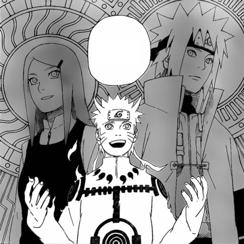 Naruto sagt, dass sein Vater sicherstellte, dass er seine Mutter begegnet, wenn dieser versucht das Chakra des Kyuubis zu kontrollieren. Ausserdem sagt Naruto, dass Kushina ihm auch zwei Dinge erzählt habe: Ein maskierte Shinobi wird eine grosse Katastrophe herbeiführen. Die zweite Sache ist, dass Naruto es sein wird, der mit der Kraft des Kyuubis diesen aufhalten kann. Jetzt versteht auch der Raikage, wer hinter der Attacke an Konoha vor 16 Jahren steckte und Tsunade versteht nun, weshalb Minato den Schlüssel zum Siegel für Naruto hinterlassen hat. Naruto sagt, dass er nicht weiss, ob sich Minato selbst für den Retter der Welt gehalten hat, aber sein Meister Jiraiya hat es. Der Raikage sagt, dass es Fakt sei, dass Minato nun tot ist. Er mag jetzt tot sein, aber er hätte gemeinsam mit seiner Mutter das Dorf gerettet. In diesen Moment gaben sie Naruto ihren Glauben, dass er dessen Job beenden würde. Bee meint, es sei vielleicht dessen Dummheit, die sie immer mutig nach vorne blicken lässt, ohne nachtragend zurückzusehen. Daraufhin stösst de Raikage Bee weg und geht mit maximale Stärke auf Naruto zu. Dieser schafft es jedoch auszuweichen. Tsunade erkennt nur einen “gelben Blitz” und Naruto sagt, dass er denselben Weg gehen wird, wie sein Vater. Aufgrund dessen lässt der Raikage diesen passieren.