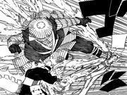 Naruto kontert mich dem Rasengan. Der Hachibi ist der Meinung, dass der Wald zerstört werden müsse, da er ihr Blickfeld behindere. Dies lässt sich Killer Bee nicht ein zweites Mal sagen und verwandelt sich in dem Bijuu-Modus.