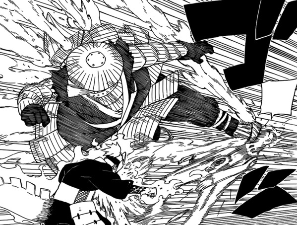 Daraufhin meint Killer Bee, dass ihm etwas komisches an Yugitos Brust aufgefallen ist. Das müsse der Empfänger sein, meint Naruto und stürmt los, doch der Roshi kommt mit seiner Magma Rüstung diesen entgegen.