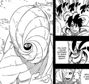 Eines Tages kam White Zetsu zu ihrem Versteck zurück und alarmierte Obito, dass seine Kameraden in Gefahr seien, umzingelt von Kirigakure Ninja. Orbito sprang sofort hoch und wollte aus der Höhle raus, aber er krachte nur gegen den Fels und riss sich den rechten Arm ab.