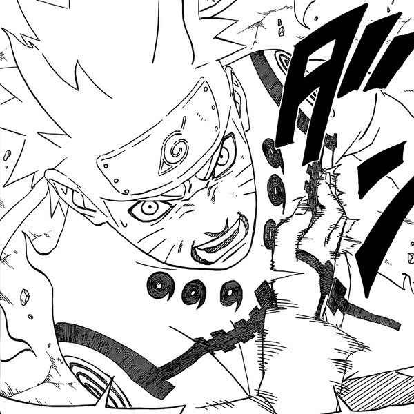 Das neue Kapitel fängt mit einer heftigen und gemeinsamen Attacke von Madara, Obito und dem Juubi an. Die Attacke deckt fast das ganze Schlachtfeld ab und greift somit alle Shinobis an. Der schnellste agierende Shinobi ist Naruto und dieser konzentriert sein Kyuubichakra so, dass er es bei den anderen kontrollieren kann. So nutzt er die Kontrolle und schützt alle Shinobis durch das Chakra des Kyuubis. Als Antwort auf Narutos Abblocken der Feuerjutsus von Madara und Obito, setzt Madara sein Susano'o ein und wirft solche Spiralen, wie es Itachi konnte. Obito hingegen ruft solche riesen Pfeiler aus der anderen Dimension und setzt sie ein. Beide Angriffe schiessen jetzt in Richtung der Shinobis zu, doch wieder setzt Naruto sein Chakra und beschützt jeden.