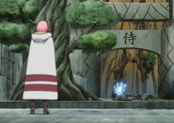Sakura, Lee, Kiba und Sai machen sich auf dem Weg um Sasuke zu finden. Lee meint, dass sie lieber Naruto die Wahrheit gesagt hätten. Sakura sagt, dass sie es nicht einfach so sagen konnte. Plötzlich spürt Kiba Sasuke in der Nähe und nennt Sakura die Richtung. Er meint, dieser Tobi sei ebenfalls bei ihm. Sasuke befiehlt allen sofort zu stoppen. Sie versucht daraufhin ihre Teamkameraden mit einer Schlafbombe ausser Gefecht zu setzen, weil sie Sasuke alleine gegenüber treten möchte. Sai weiss dies allerdings zu vereiteln und hällt Sakura auf. Er sagt, dass er nimanden vorbei gehen lässt, solange bis Kakashi mit dem Doppelgänger von ihn kommt, damit er Sakuras Vorhaben endlich ein Ende setzen kann. Sakura sagt, dass wenn er sie nicht weitergehen lässt, wird diese keine Gnade mehr zeigen. Derweil machen sich Kakashi und der Doppelgänger von Sai auf dem Weg. Der Doppelgänger sagt, dass sie sich beeilen müssen, da die Situation ausser Kontrolle gerät. Kiba sagt, dass er Kakashi verstehen könne, aber er könne Sasuke nicht so einfach gehen lassen. Lee und Kiba versuchen Sai anzugreifen. Plötzlich erscheint unter innen drei Schlafbomben, von Sakura geworfen und schafft es damit alle drei ausser Gefecht zu setzen. Der Doppelgänger, der Kakashi begleitet, verschwindet. Kakashi sagt, dass er sehr entsetzt von Sakura ist. Er hätte nicht gedacht, dass diese so weit gehen wird.