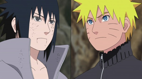 In einer metaphysischen Zwischenebene sagt Naruto zu Sasuke, dass dieser stehts sein Vorbild war. Er wollte immer so stark und cool werden wie Sasuke, deshalb ist er stets diesen nachgeeifert.Er sei froh, dass er solch einen Kameraden wie Sasuke gefunden hat. Sasuke meint daraufhin, egal was Naruto nun zu sagen hat, er werde sich nicht mehr verändert können. Er werde jeden einzelnen aus dem Dorf töten. Die einzigen Optionen, die Naruto zur Wahl stehen, sind Sasuke zu töten und als Retter des Dorfes dazustehen oder diesen von Sasuke getötet zu werden und in die Geschichte als Verlierer einzugehen, meint Sasuke. Naruto sagt, dass er sich weigere diese Optionen anzunehmen, da er weder als Verlierer noch als Held, der Sasuke getötet hätte in der Geschichte eingehen wird. Nichts davon wird eintreffen.Nach dem Zusammenprall in der Gegenward von Sasukes Chidori und Narutos Rasengan werden beide von der Wucht ihrer Attacken nach hinten geschleudert. Die weisse Hälfte Zetsus, die alles im Geheimen beobachtet hat, kann Sasuke vor einem Aufprall gegen eine Steinmauer retten, so wie Kakashi Naruto abfängt. Nach dem Aufprall sagt Naruto, dass “alles nun klar sei”.