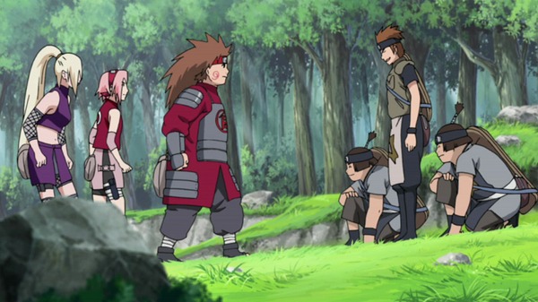 Ino und Choji hat sie zur Verstärkung mitgenommen. Naruto entscheidet sich mit zu helfen, da sie sowieso auf die Genesung von Gai warten müssen. Doch nach wenigen Minuten fängt Naruto an sich zu beschwerden, da die Suche nach Kräutern total langweilig sei und er deshalb lieber bei Gai und Yamato geblieben wäre. Ino erklärt ihn, dass dies eine sehr wichtige Mission sei. Wenn der Krieg anfängt, werden viele Leute verletzt werden. Vielleicht hunderte oder tausende. Diese Arbeit ist deshalb so wichtig, weil die Verwundeten hinterher versorgt werden müssen. Sakura wundert sich, weshalb sie noch keine Kräuter gefunden hat, da die Pfalnzen normalerweise überall auf der Insel wachsen. Als sie schliesslich einige finden, werden sie von angeflogenden Kunais überrascht. Es sind Shinobi aus der Bensui Insel, die diese in Richtung Sakura geworfen haben. Jetzt wird Sakura klar, weshlab sie die ganze Zeit keine Kräuter gefunden hat, weil diese bereits von den Shinobis aus Bensui eingesammelt wurden. Die Shinobis bieten dennen einen Korb voller Kräuter an. Allerdings verlangen sie dafür Geld, was Sakura und Co. überhaupt nicht passt.