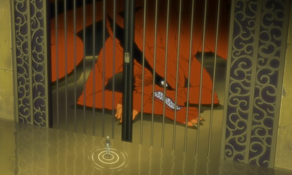 Als Naruto diesen umlegt, öffnet sich eine Tür zu einem seltsamen rosa Ort. Dort soll Naruto Kontakt zu dem Neunschwänzigen aufbauen. Bee gibt ihm während dieser Zeit Anweisungen. Dabei verbindet er sich mit Narutos Geist. Naruto findet sich vor dem Käfig des Fuches wieder. Er begrüsst das Monster und macht sich auf Bees Befehl hin, daran sein Siegel zu lösen.