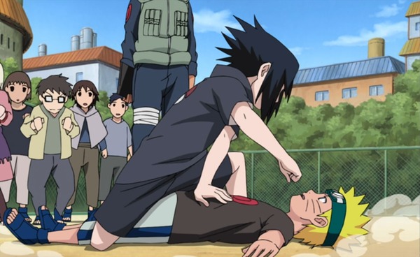 Und wieder einmal wird der Unterschied zwischen Sasuke, der mutig und unerschrocken gehandelt hat, und Naruto, der sich vor Schreck nicht rühren konnte, deutlich. In diesem Moment schwört sich Naruto, nie wieder in eine Situation zu kommen, aus der er gerettet werden muss.
